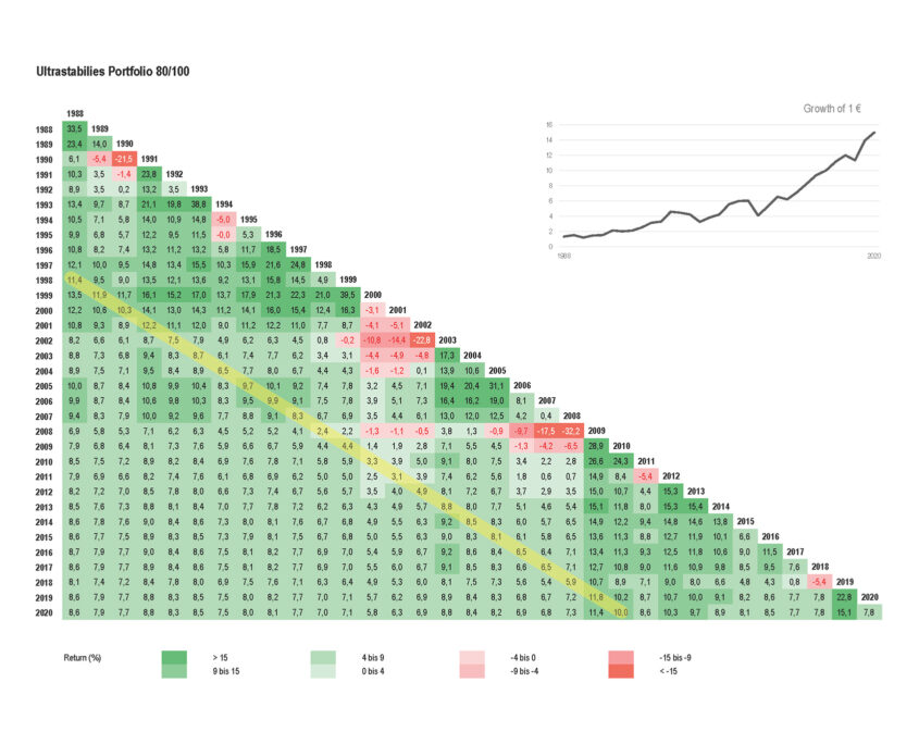 Die Stärke und Robustheit des Modells liegt auch in seiner Einfachheit begründet: innerhalb des Portfolios kommen ausschließlich hochliquide, klassische Wertpapiere zum Einsatz (Aktien-ETFs und – Anlageklassenfonds, Staatsanleihen als Einzeltitel).